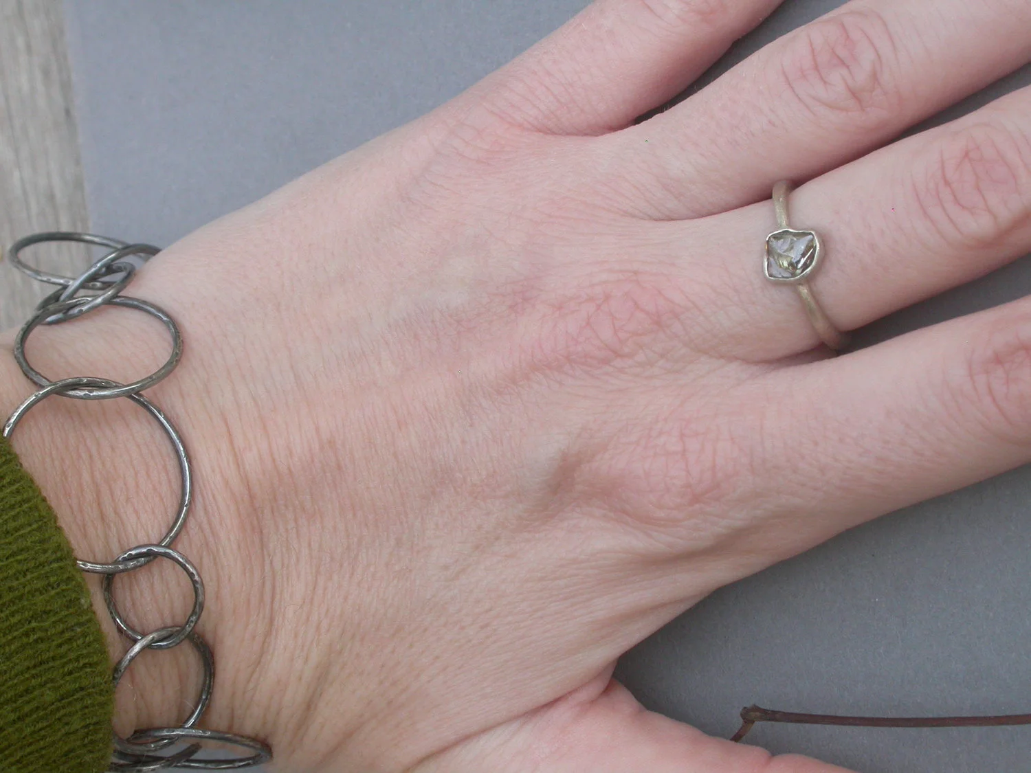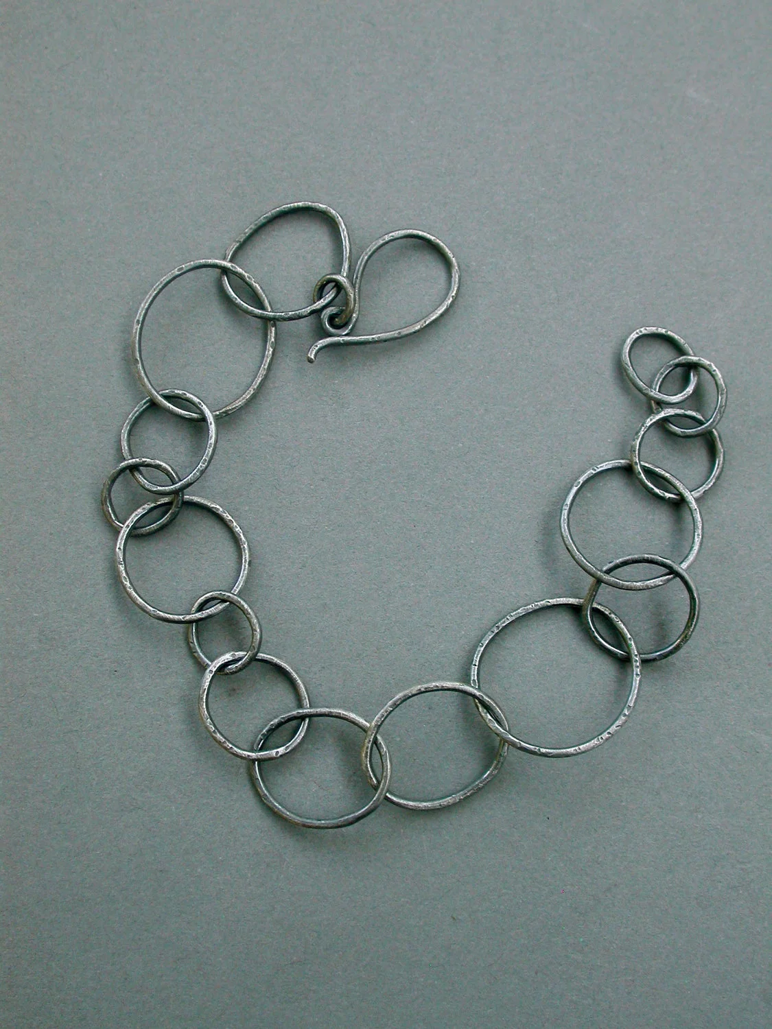 this simple oxidized sterling silver organic circle bracelet was made with versatility and organic modern style in mind.