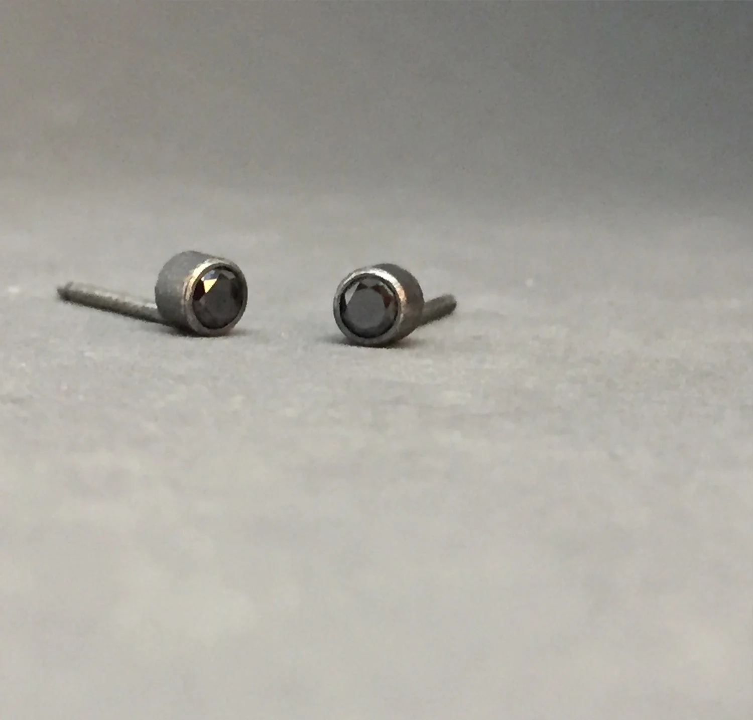 ....hand set beautiful black diamond stud earrings. made with oxidized sterling silver and 3mm black diamonds. these can be made in your birthstone of choice. email me for details.