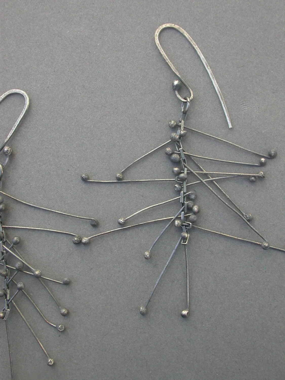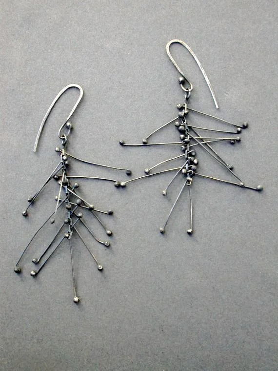 dangle earrings kinetic mobile wearable oxidized sterling jewelry minimal modern contemporary art jewelry metalsmith