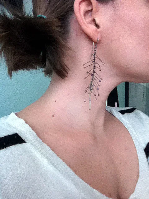 these "dangle earrings" are made of oxidized sterling silver. this sassy & swanky pair of earrings are all hand fabricated by me. they measure about 3" long including the ear wire X .5" wide.