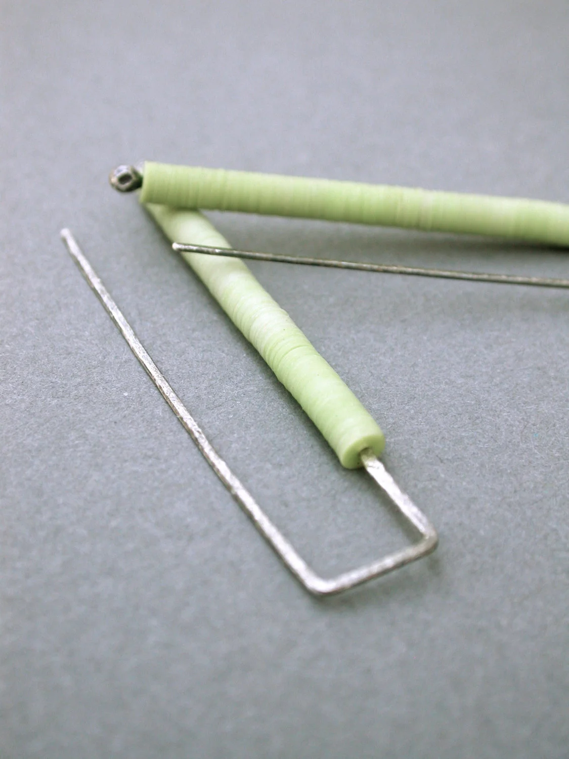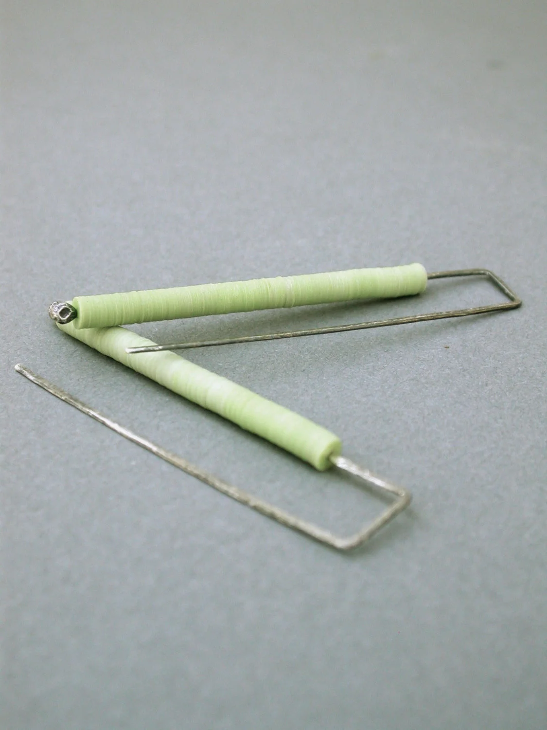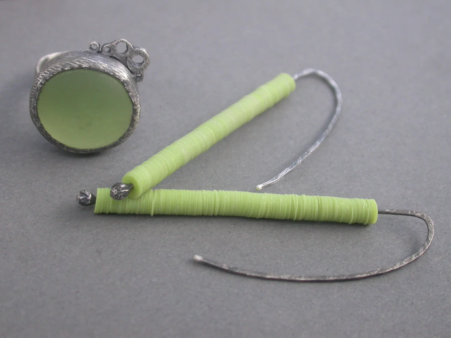 long linear lime green pale lemon lime green sequin modern contemporary art jewelry earrings