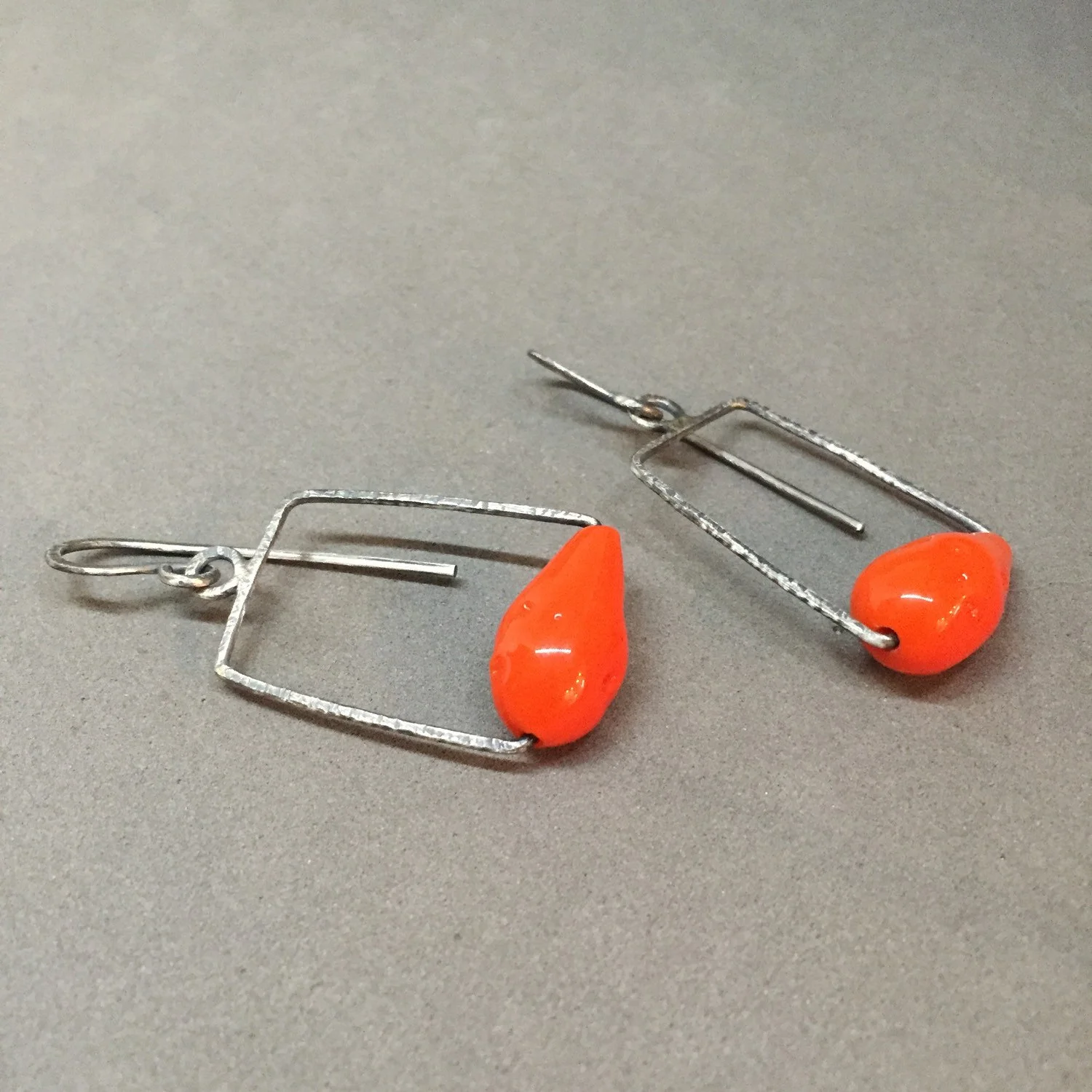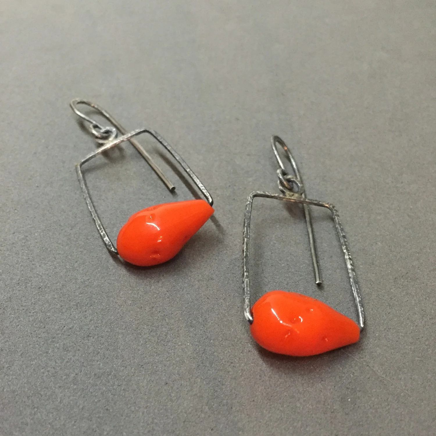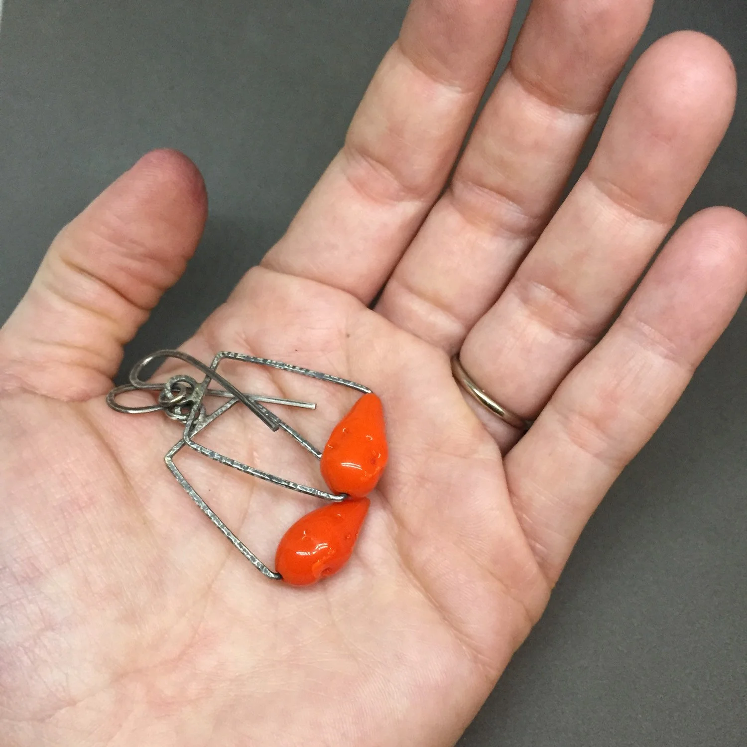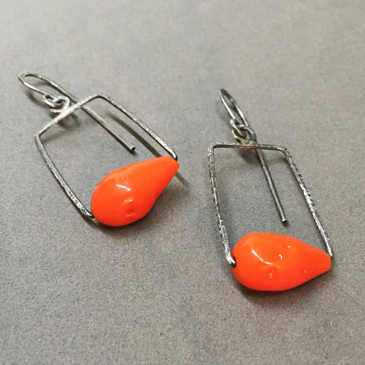 orange drop earrings vintage glass earrings oxidized silver earrings dangle earrings everyday earrings contemporary jewelry jaime jo fisher