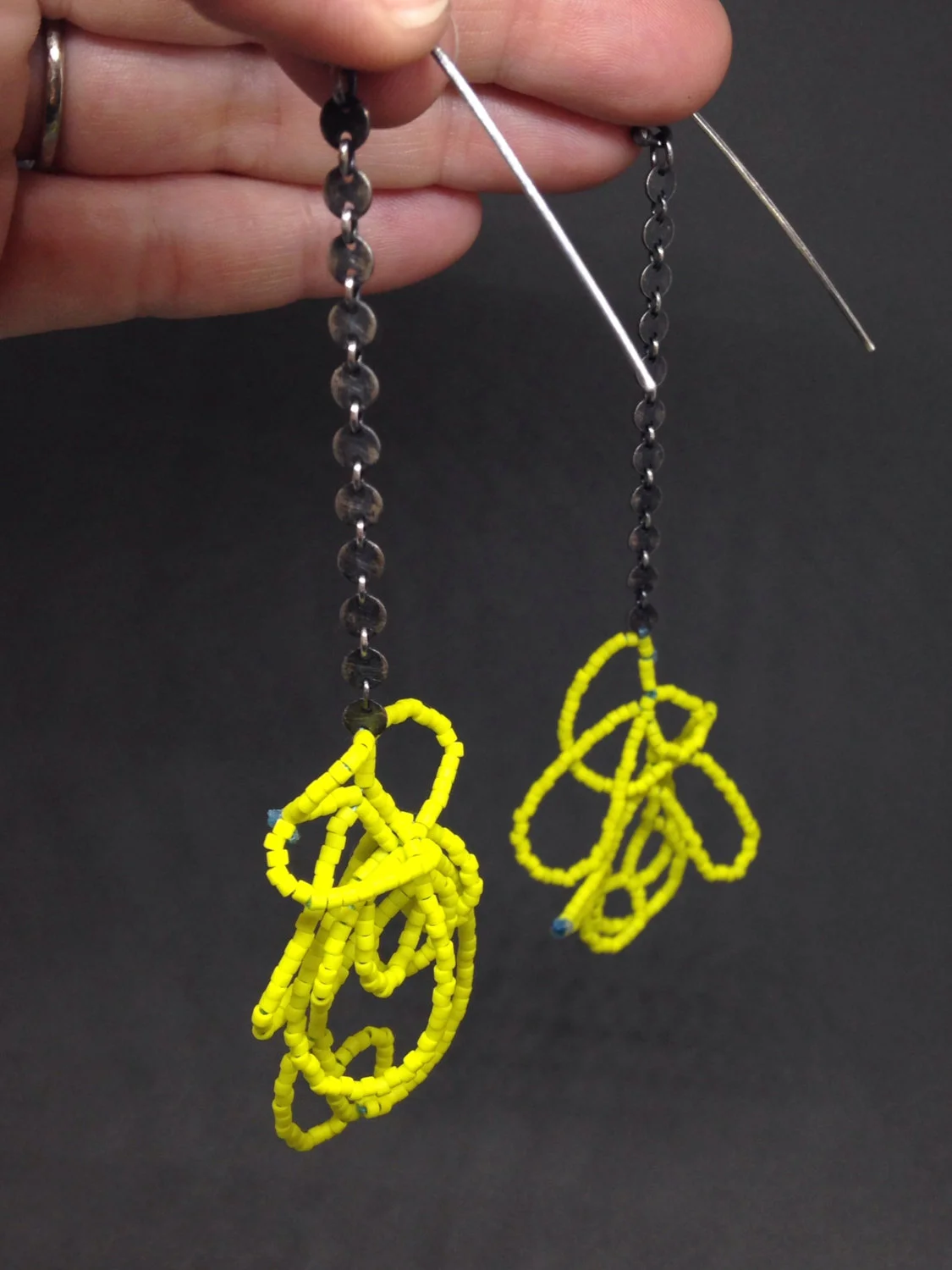 Scribble earrings in coral flamingo pink beaded dangle chandelier earrings oxidized sterling art earrings sculptural art jewelry jaime jo fi