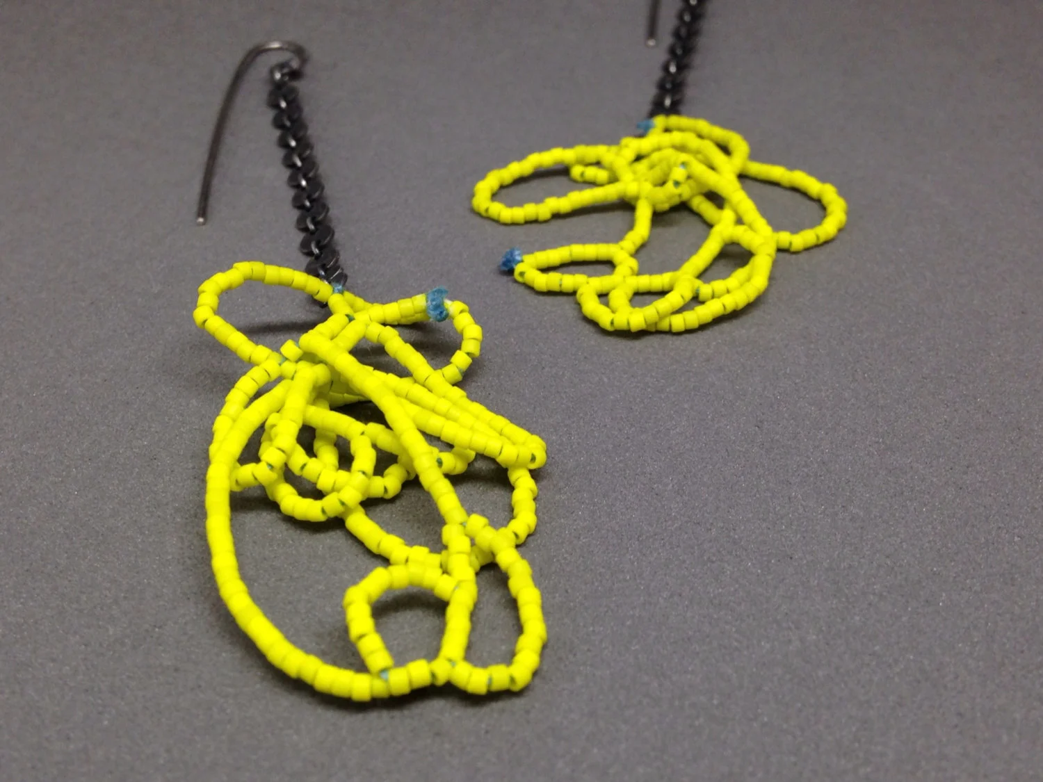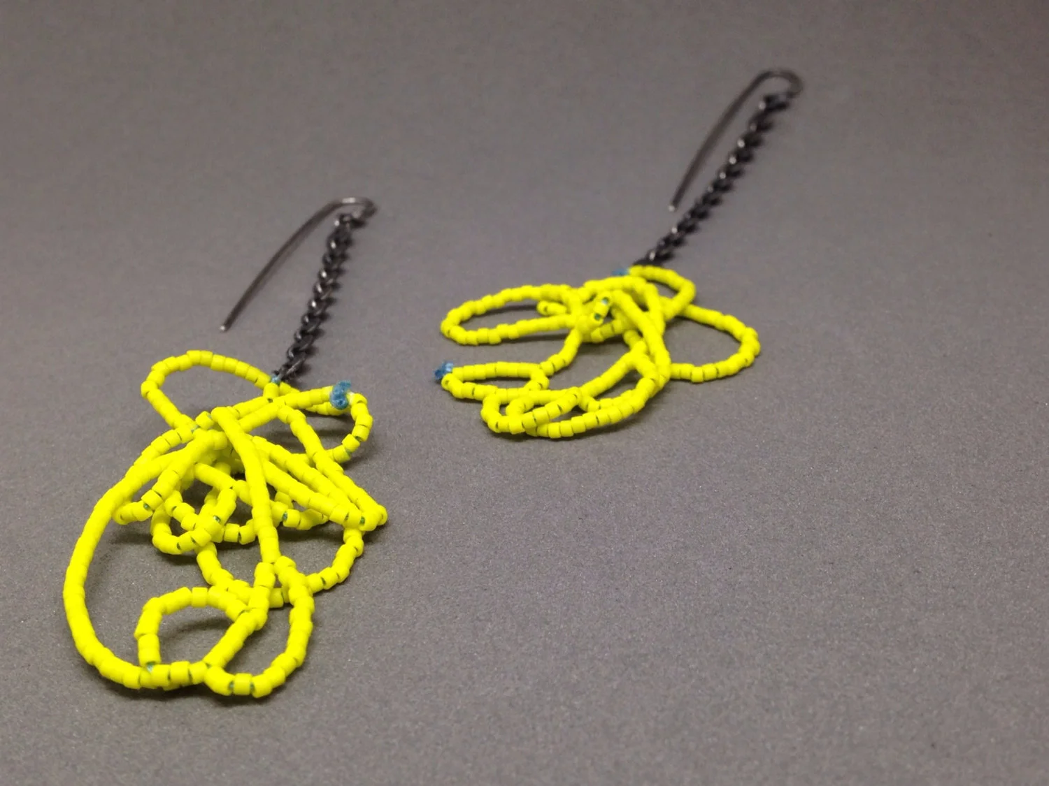 Killer neon yellow "scribble earrings" made of delica seed beads thread and sterling silver.