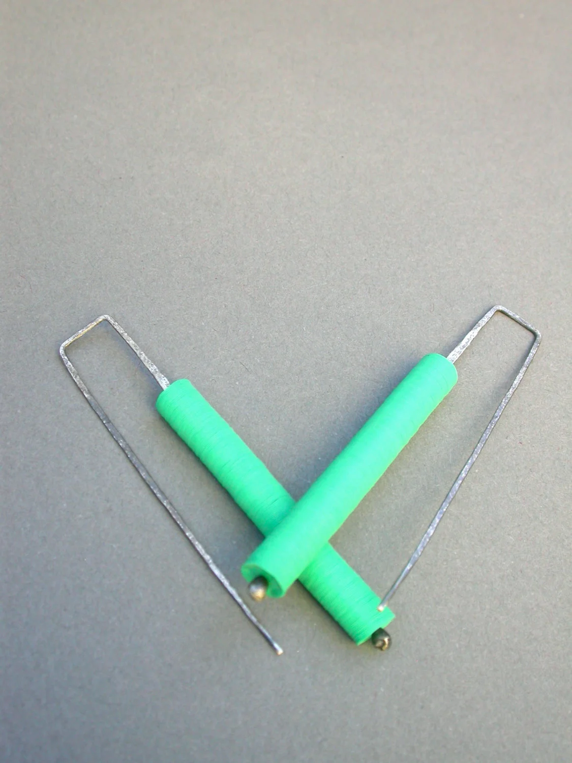 stacked column linear pendulum vintage sequin earrings dangle long bright seafoam green pop of color everyday long earrings jaime jo fisher