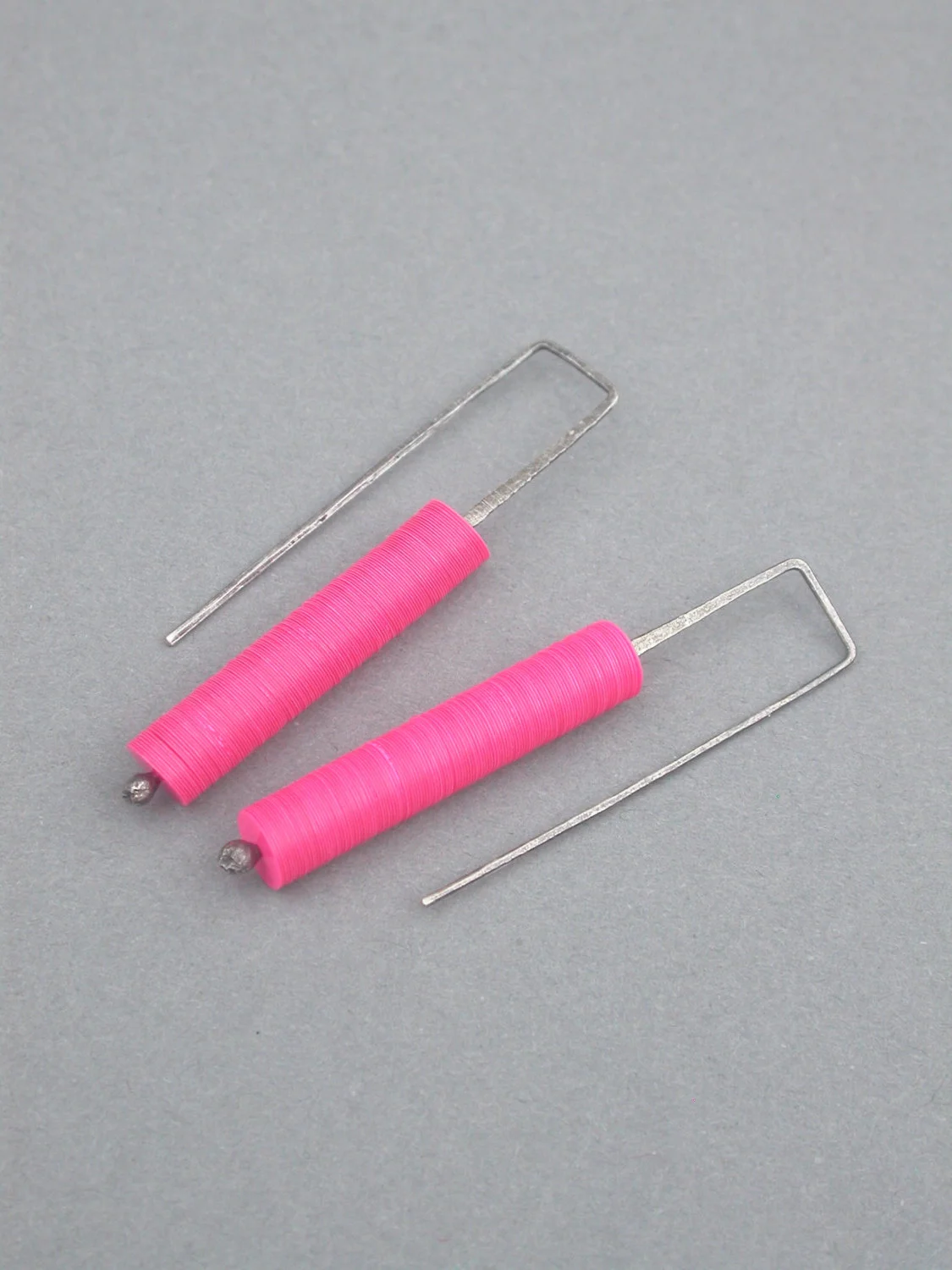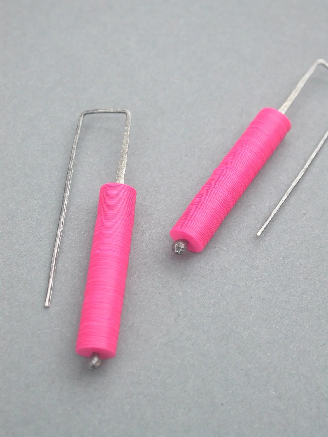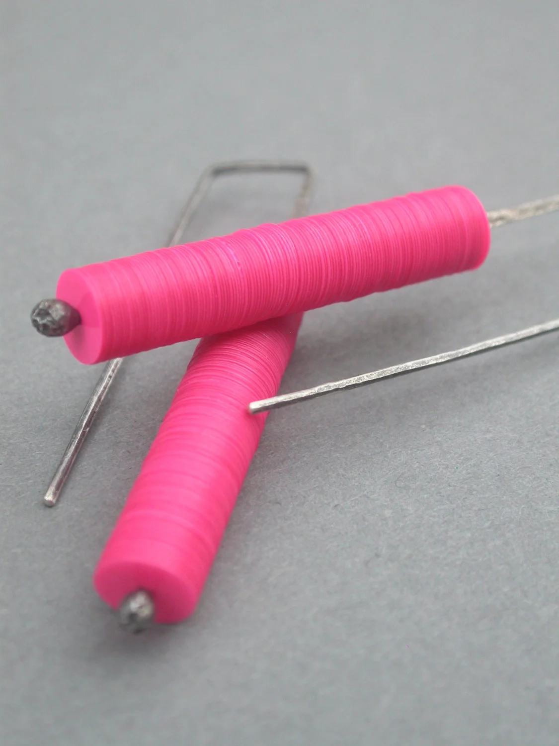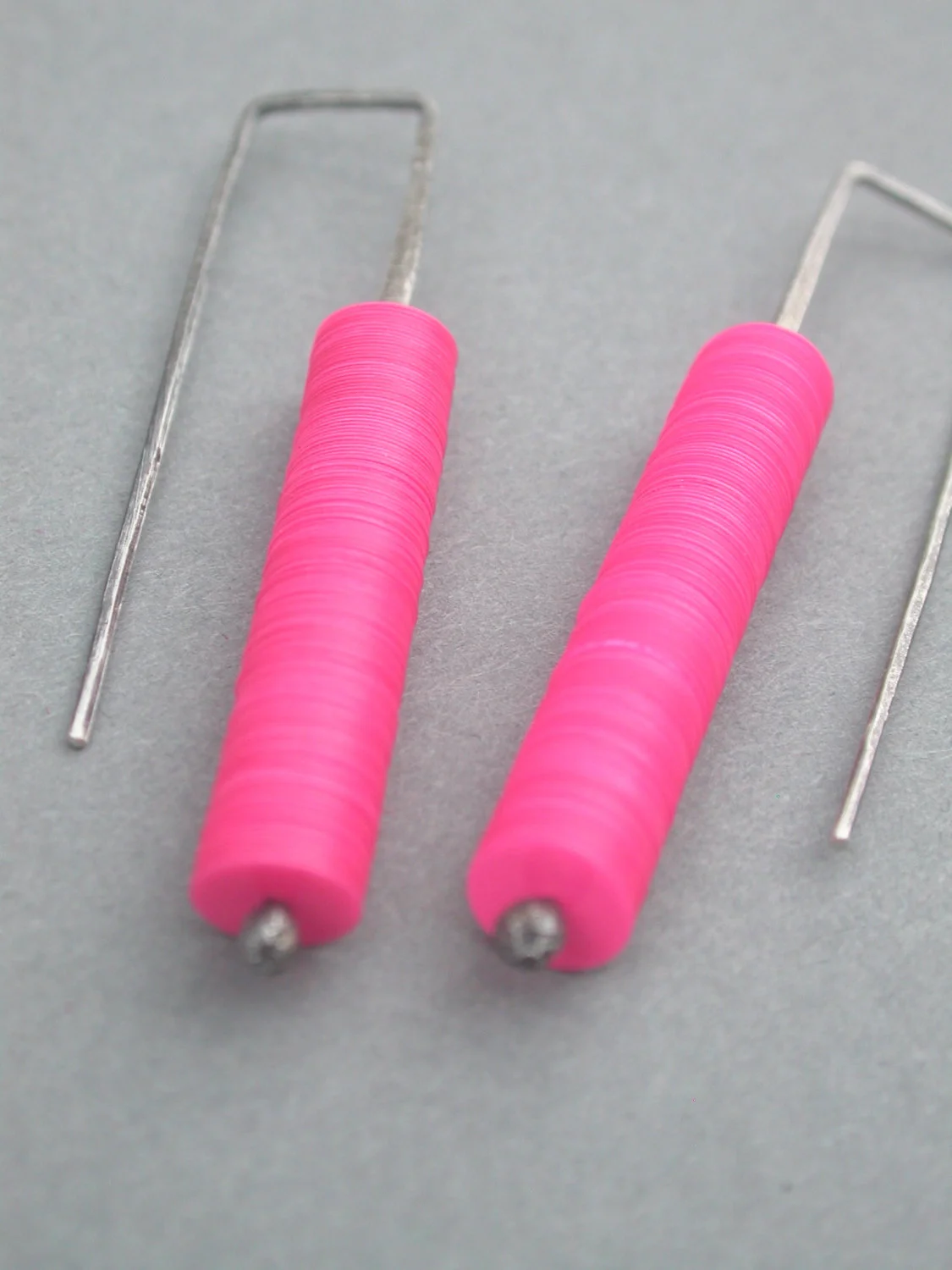 stacked column linear pendulum vintage sequin earrings dangle long hot pink everyday jaime jo fisher