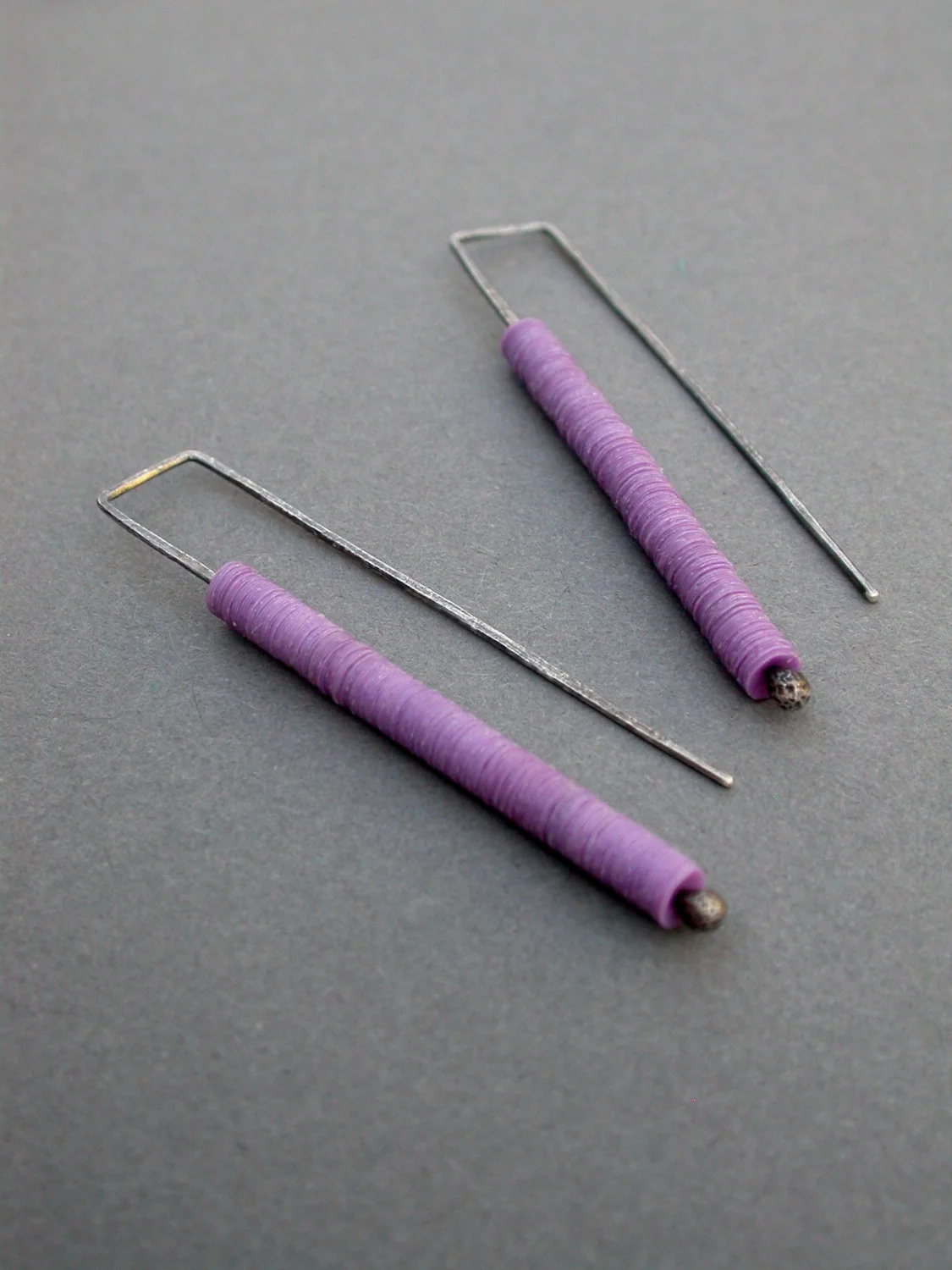 stacked column linear pendulum vintage sequin earrings dangle long lavender purple lilac everyday jaime jo fisher