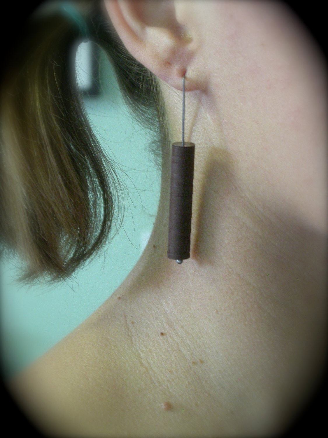 these earrings are all hand fabricated by me in my studio in austin, tx. they are made of sterling wire that is melted, manipulated, sanded, hammered, oxidized & sanded again to bring back some of the sterling to the surface.