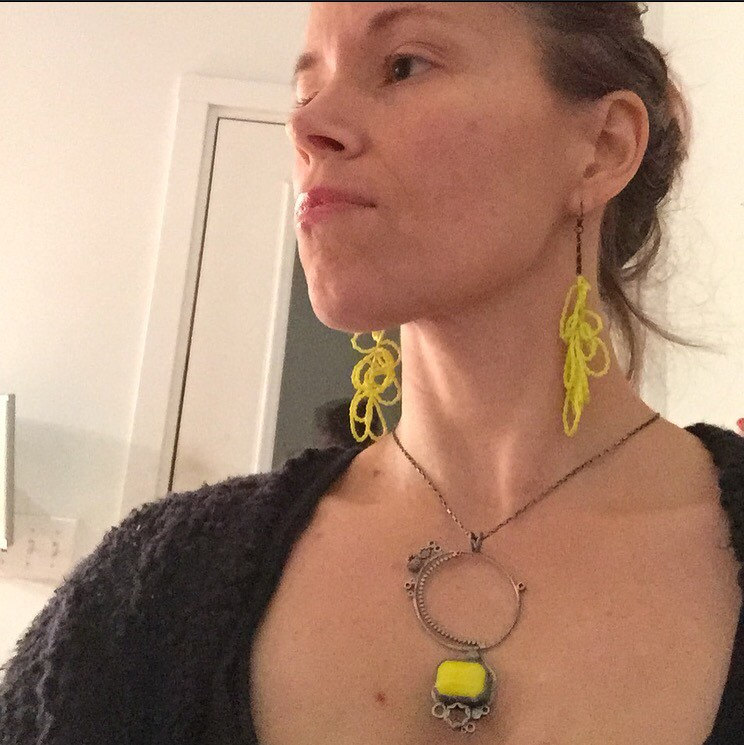yellow yellow hot neon yellow lazer yellow single pendant necklace metalsmithing contemporary art jewelry modern