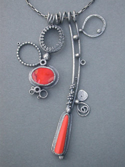 hot red lipstick red neon red orange pendant necklace metalsmith metal art jewelry modern contemporary jaime jo fisher eclectic