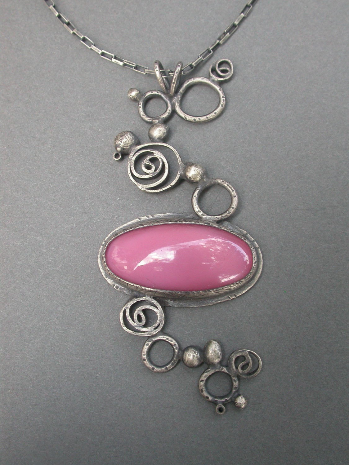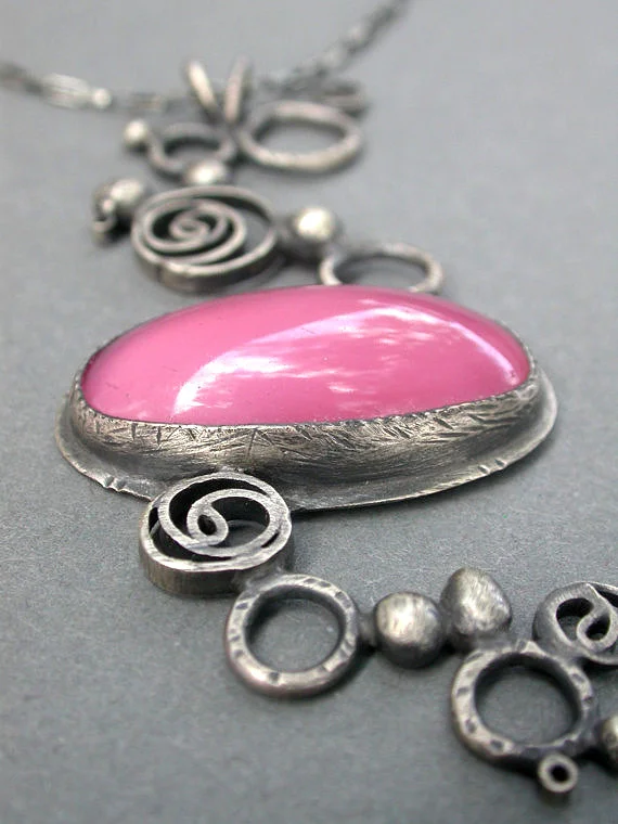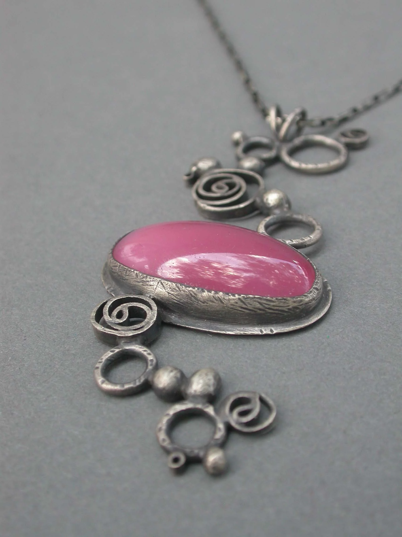 berry single pendant necklace pink purple oxidized sterling silver contemporary art jewelry bold necklace eclectic