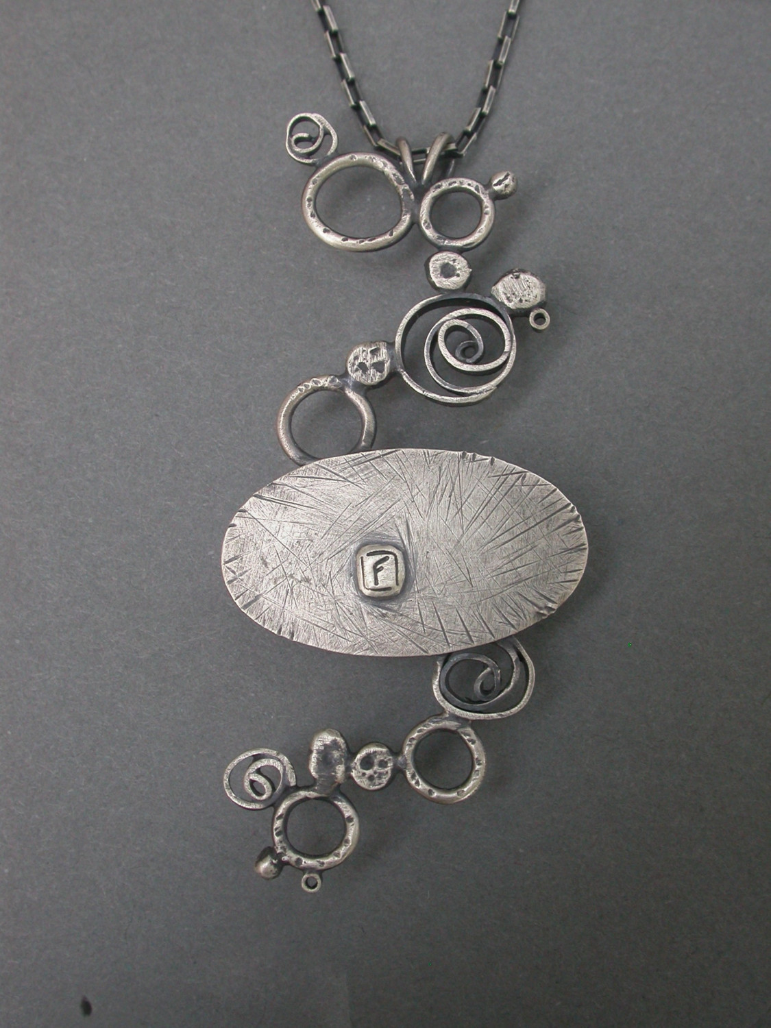this piece is all hand fabricated by me in my studio in austin, tx. the "berry pendant" is made with oxidized sterling silver. mention the length of chain you would like in comments section during checkout.
