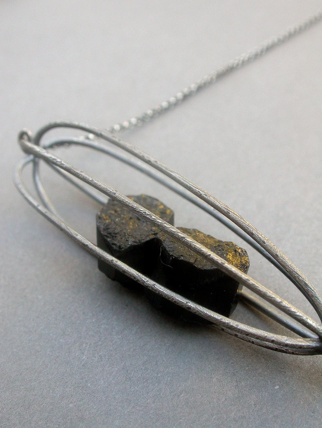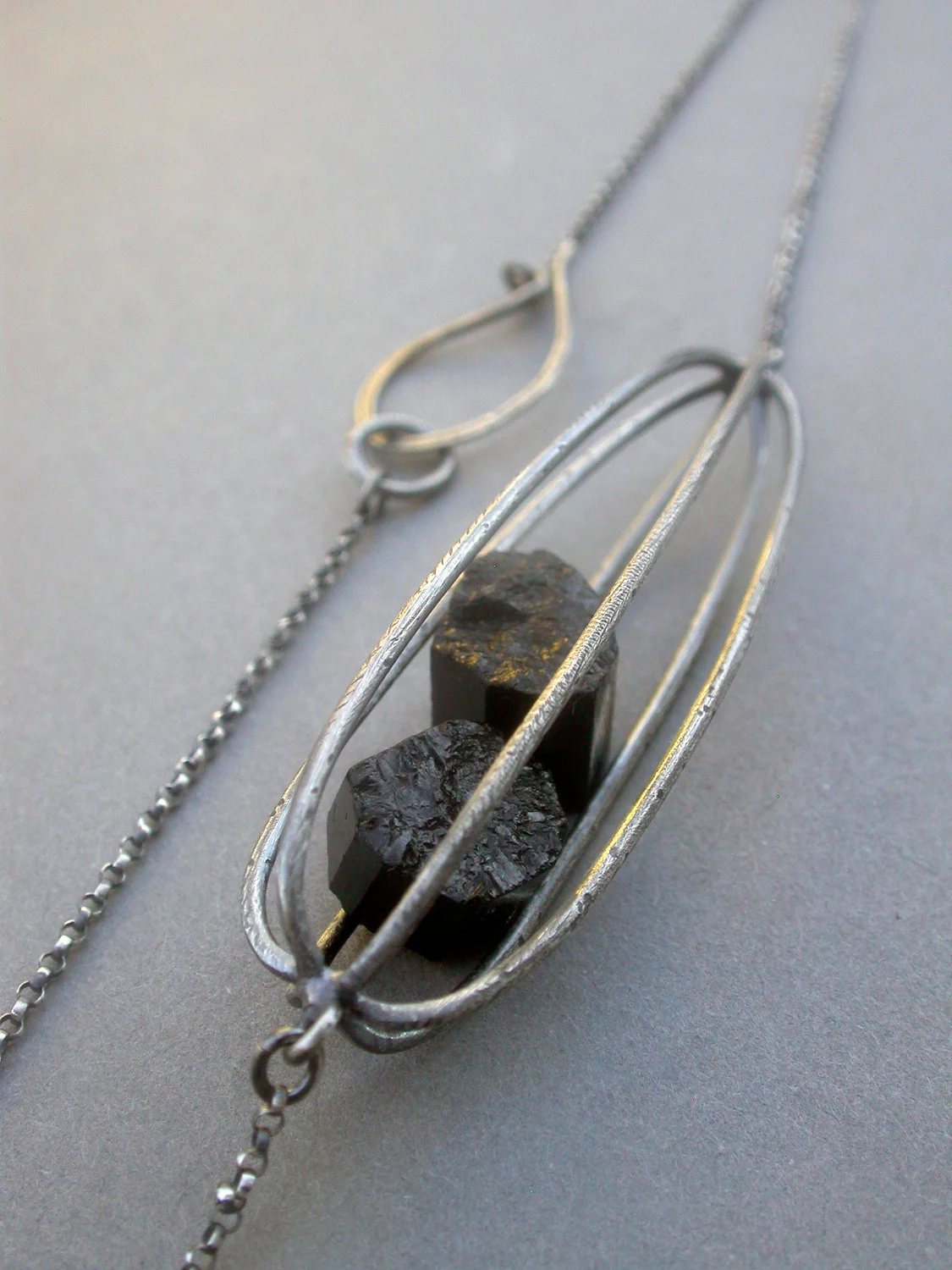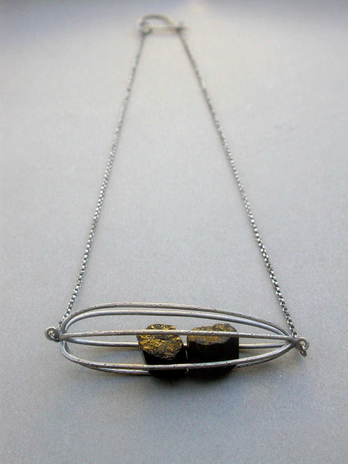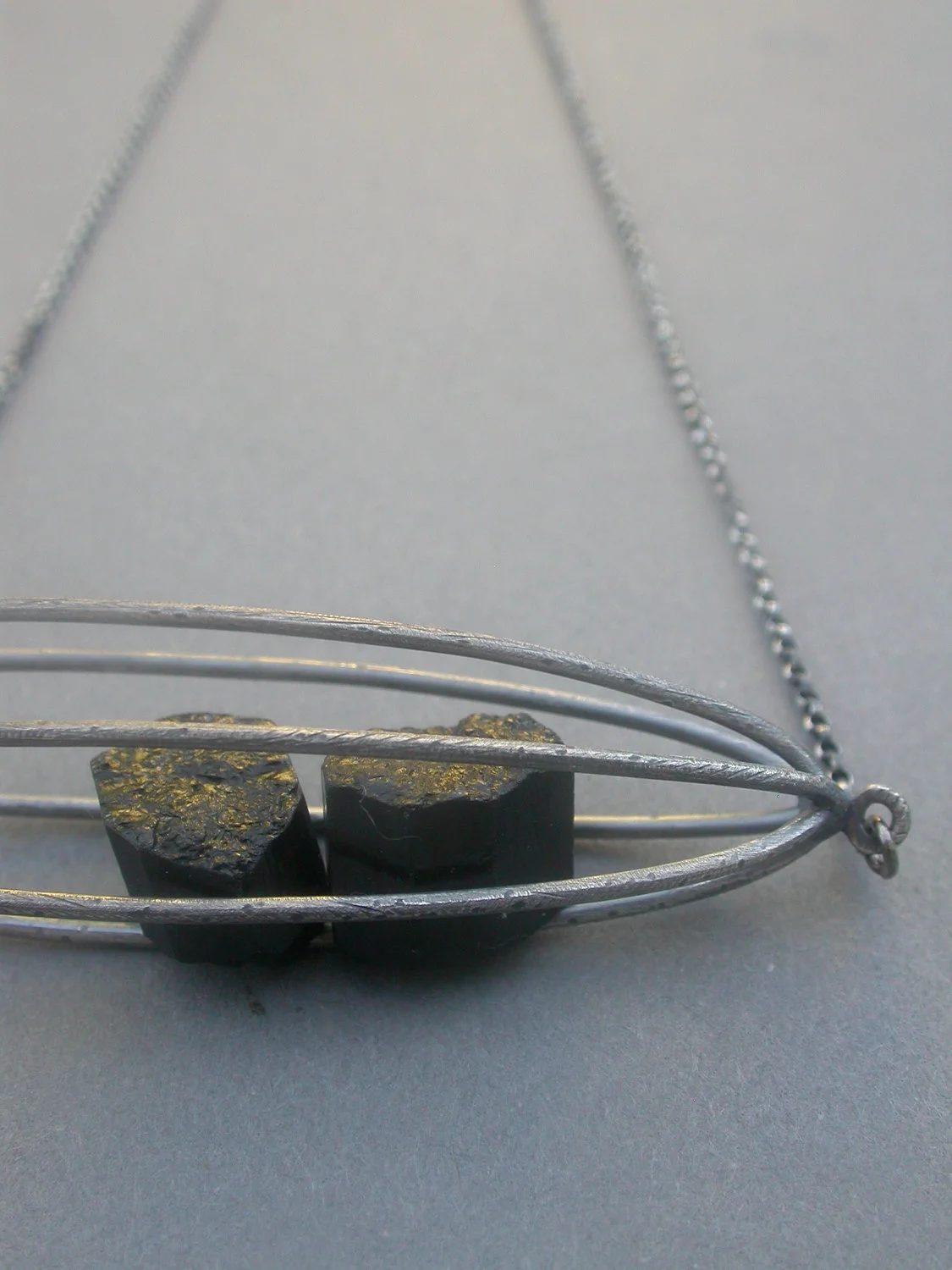 cage pod container rattle necklace modern contemporary art jewelry everday necklace statement necklace black tourmaline