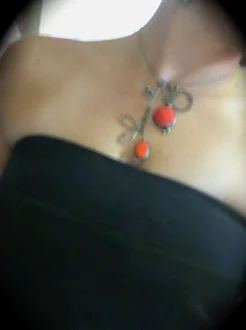 Very unique pale pink pendant hanging charm style sculptural necklace.