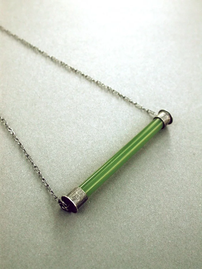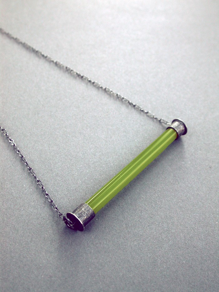 ThE OriGiNaL COLOR BAR PENDANT in grass green simple everday eclectic funky oxidized sterling silver necklace glass linear geometric