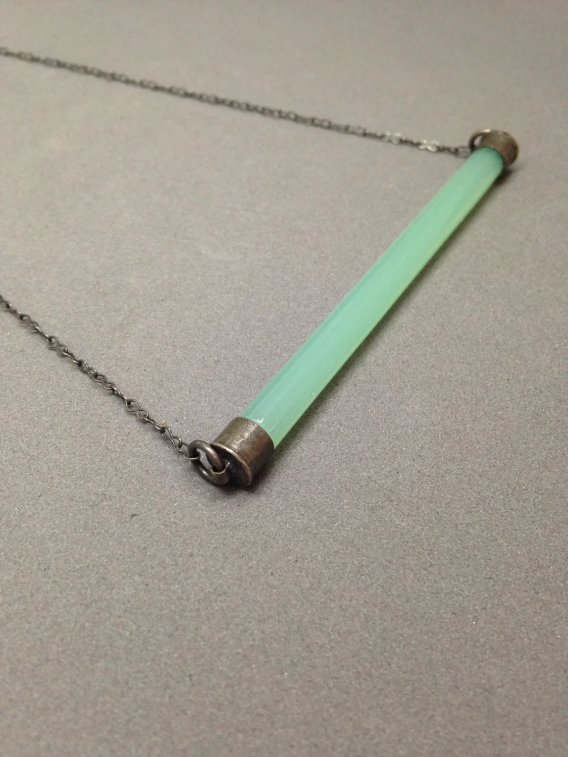 the color bar pendant is made to order. due to the handmade nature there may be subtle differences between the necklace you receive and the pictures in the listing. each piece is made carefully with love and attention to detail. this listing is for the color bar pendant in SEAFOAM unless other wise specified in the notes to seller. please mention chain length desired in the notes to seller.