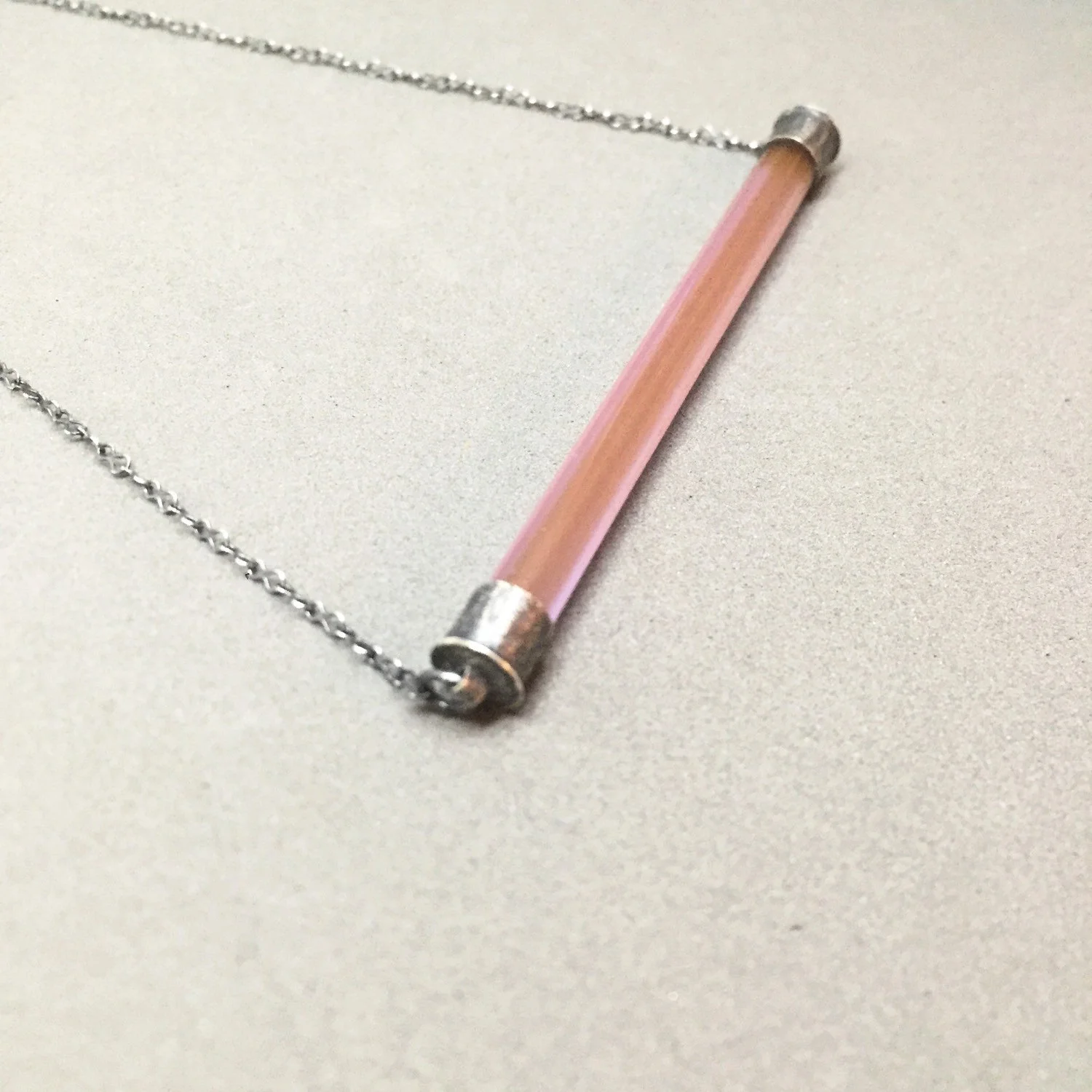 the color bar pendant is made to order. due to the handmade nature there may be subtle differences between the necklace you receive and the pictures in the listing. each piece is made carefully with love and attention to detail. this listing is for the color bar pendant in PINK OPAL unless other wise specified in the notes to seller. please mention chain length desired in the notes to seller.