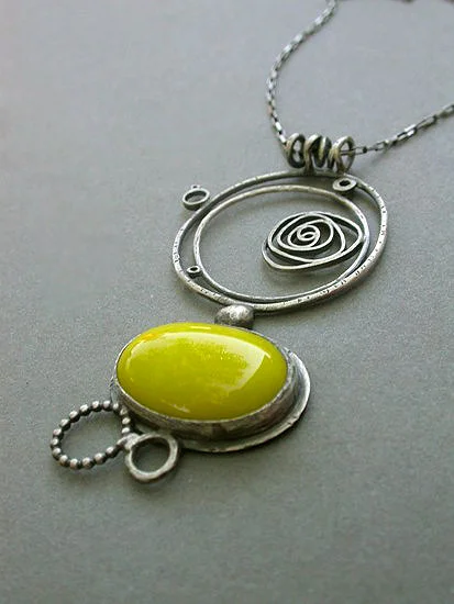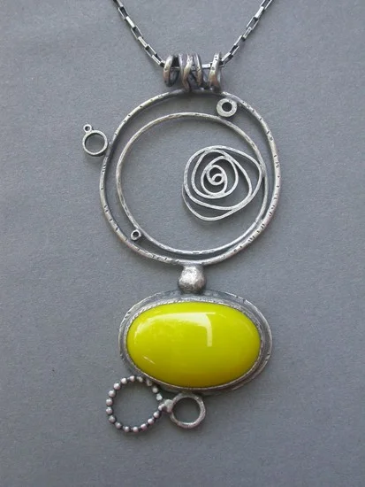 yellow yellow hot neon yellow lazer yellow single pendant necklace metalsmithing contemporary art jewelry modern