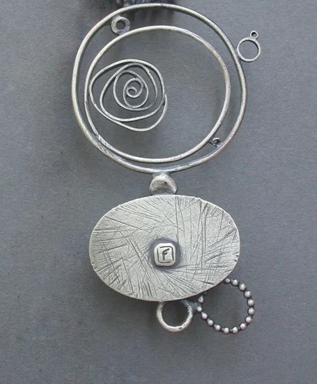 the "yellow yellow single pendant" is made with oxidized sterling silver and a piece of vintage glass. the piece of glass is deep yellow color with a that has just enough green in it to make it a really unique color. the bezel is accented with a circular design and abstract flower swirl. step out in this funky piece ;O)