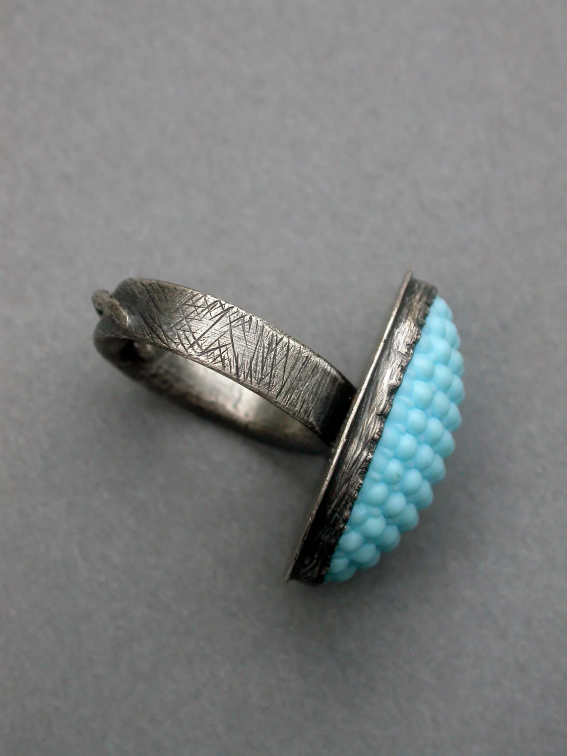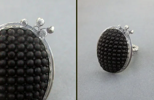 black glass bumpy textured cocktail night on the town ring metalwork art jewelry everyday ring jaime jo fisher mourning jewelry ring