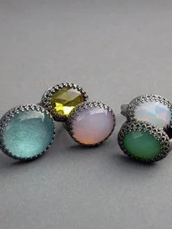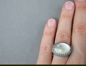 clear faceted vintage glass filigree fancy cocktail ring dainty simple feminine metalwork art jewelry everyday ring jaime jo fisher