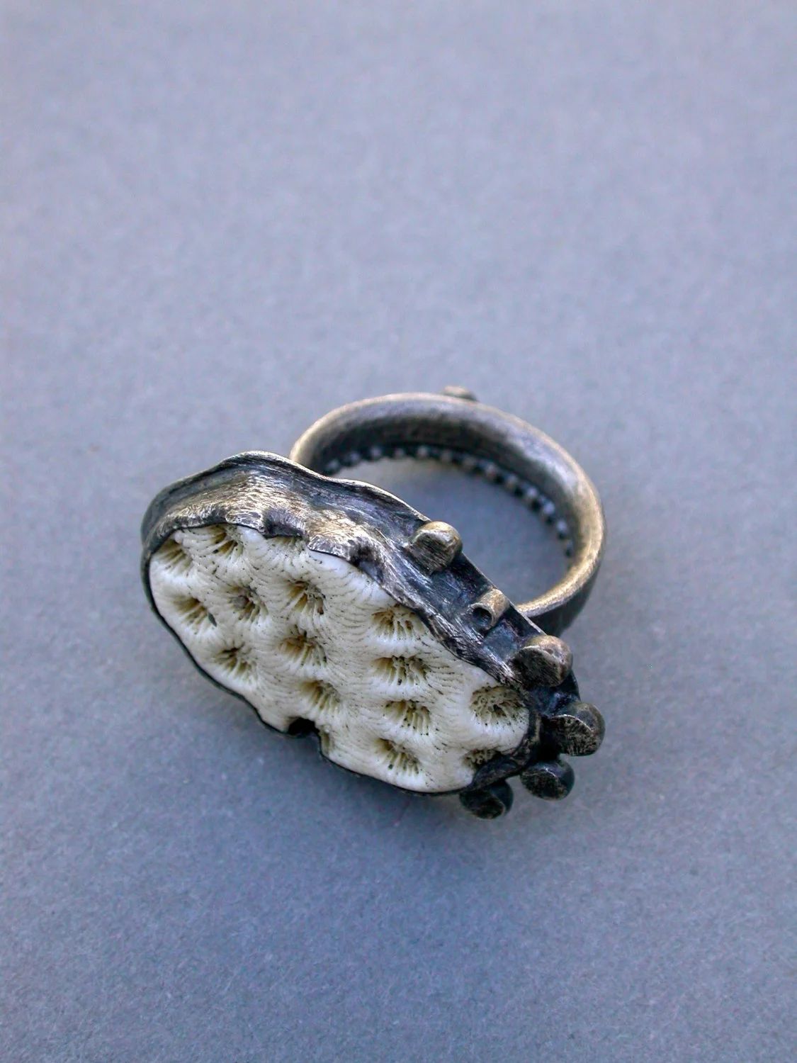 found coral modern statement ring jewelry oxidized sterling jaime jo fisher eclectic nature beach ocean mermaid found art jewelry