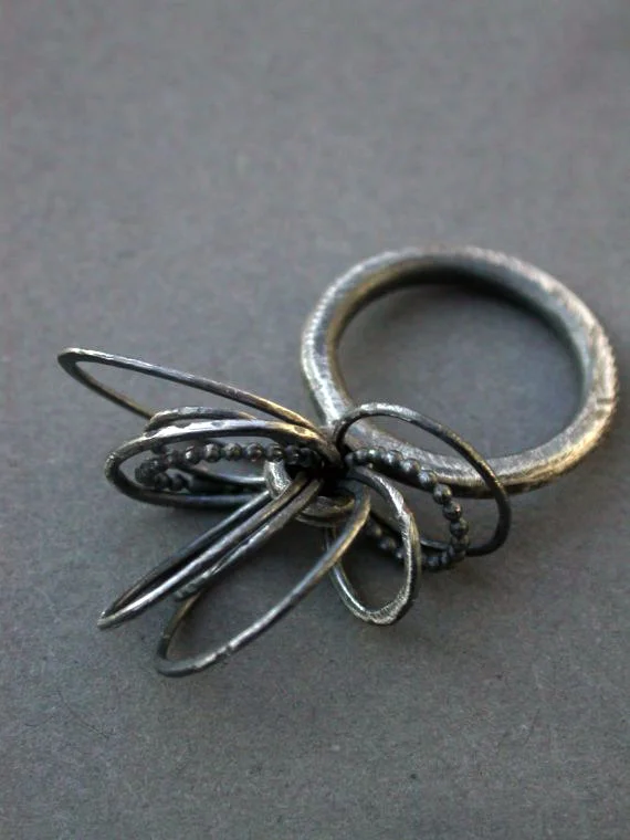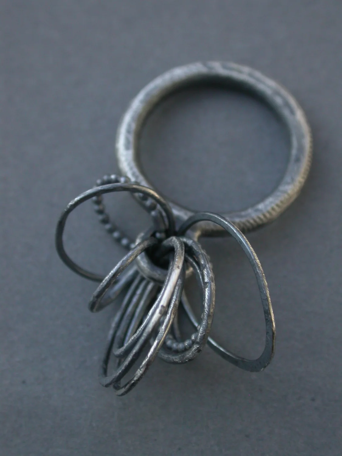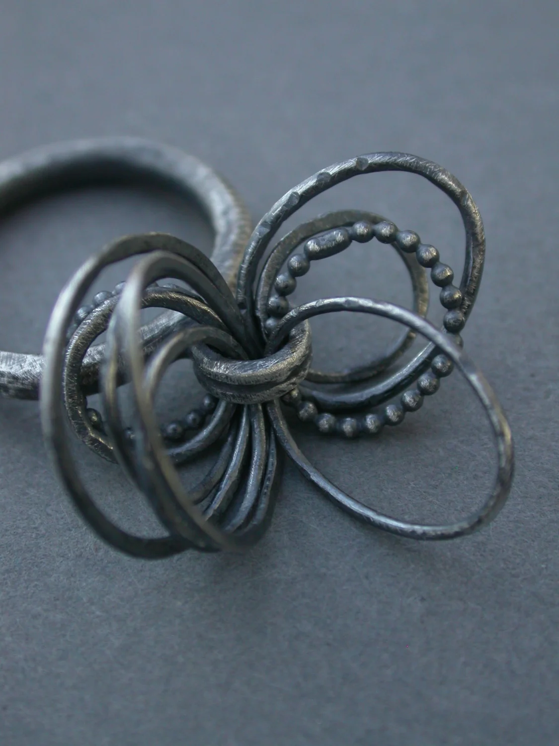 kinetic toy ring loops circles of metal mobile contemporary art jewelry jaime jo fisher oxidized sterling silver