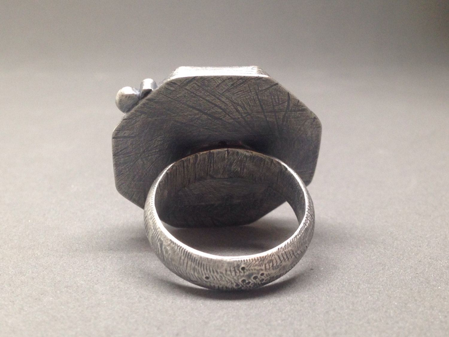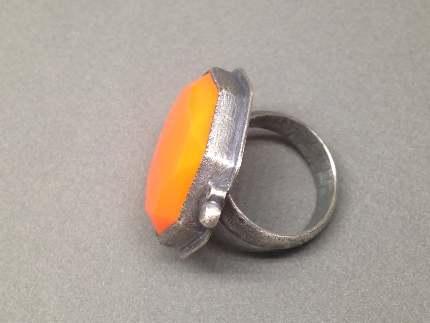 large bright orange octogan geometric ring big ring jewelry oxidized sterling silver vintage glass jewelry oversized cocktail ring statement