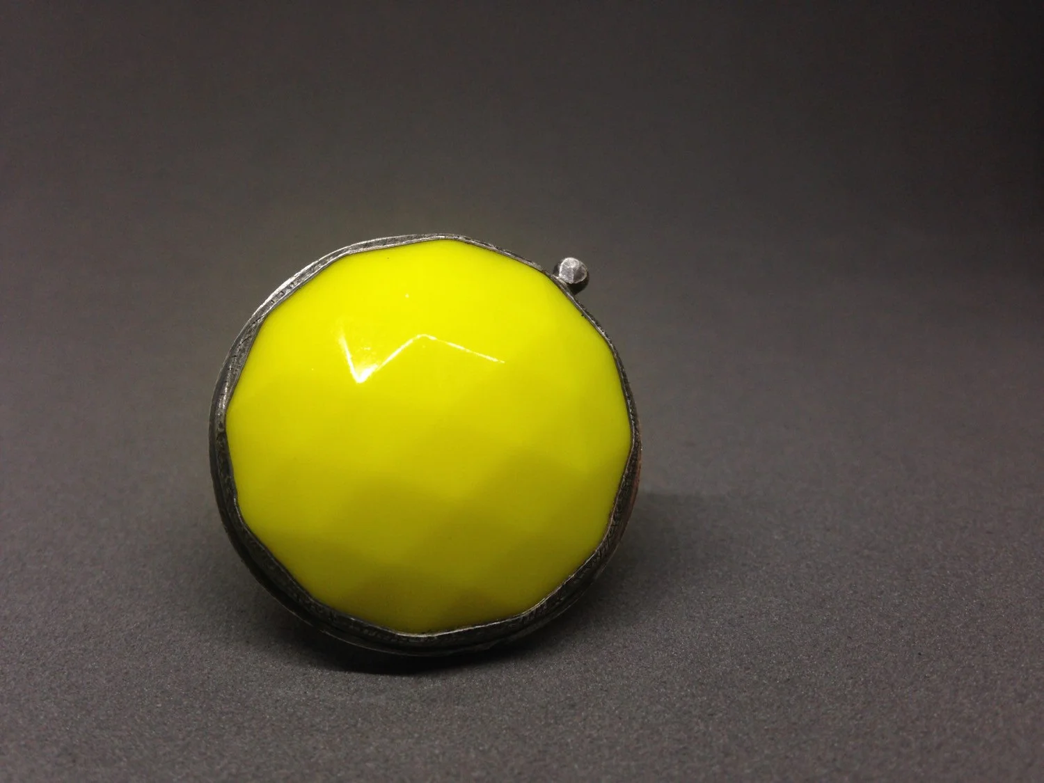 large yellow big ring jewelry oxidized sterling silver vintage glass jewelry oversized cocktail ring statement ring faceted glass