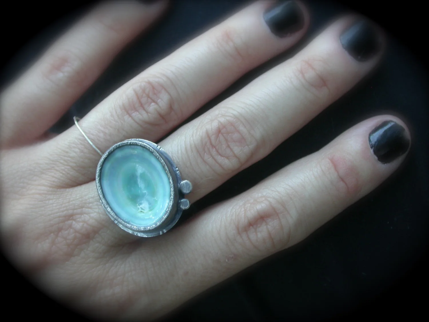 limpet ring aqua shell ring water seafoam blue sea blue organic beach jewelry bohemian hippie surfer jewelry funky everyday ring