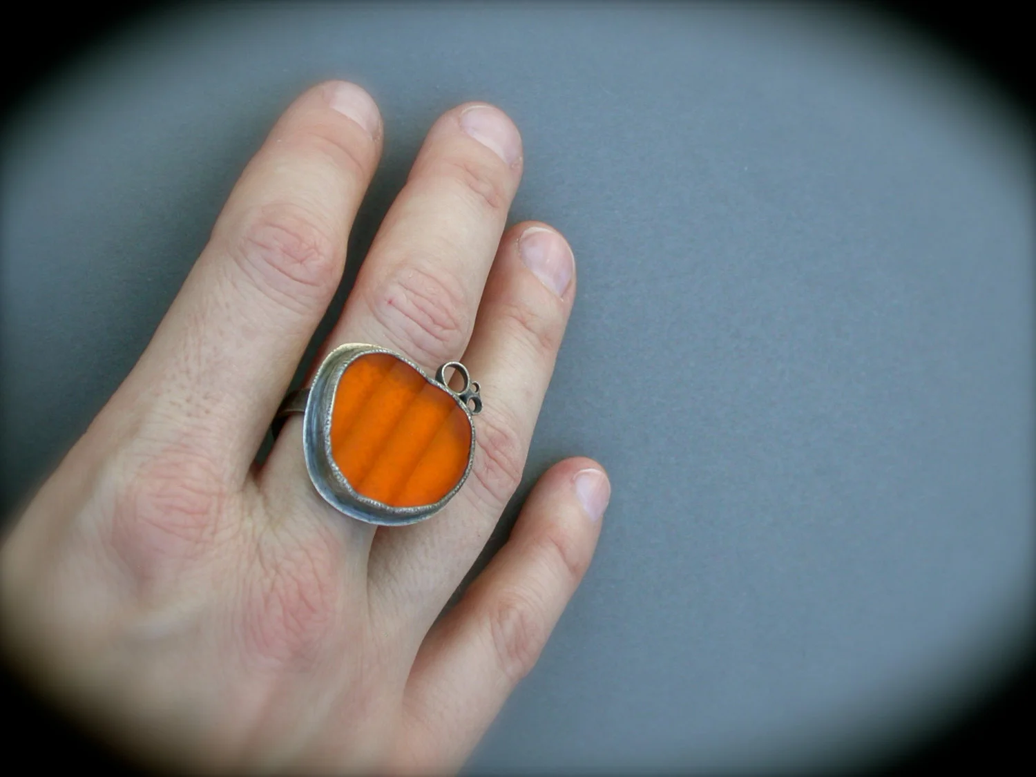 orange ring reflector statement eclectic cocktail ring jewelry oxidized silver jaime jo fisher recycled ring city style modern art jewelry