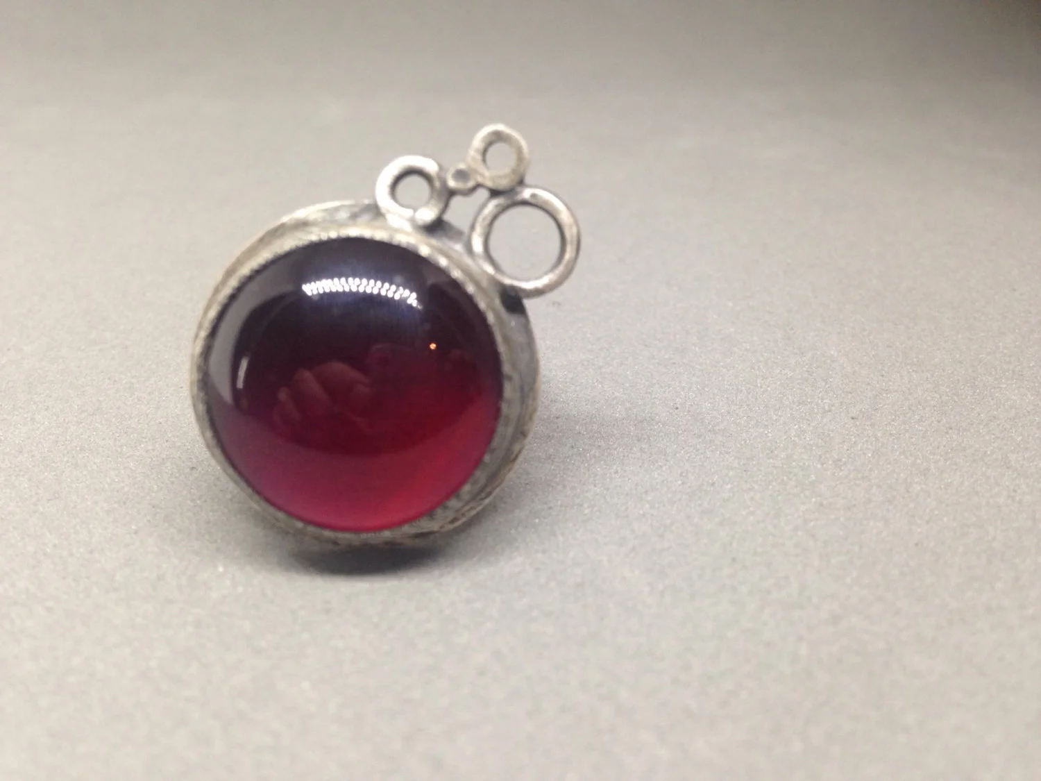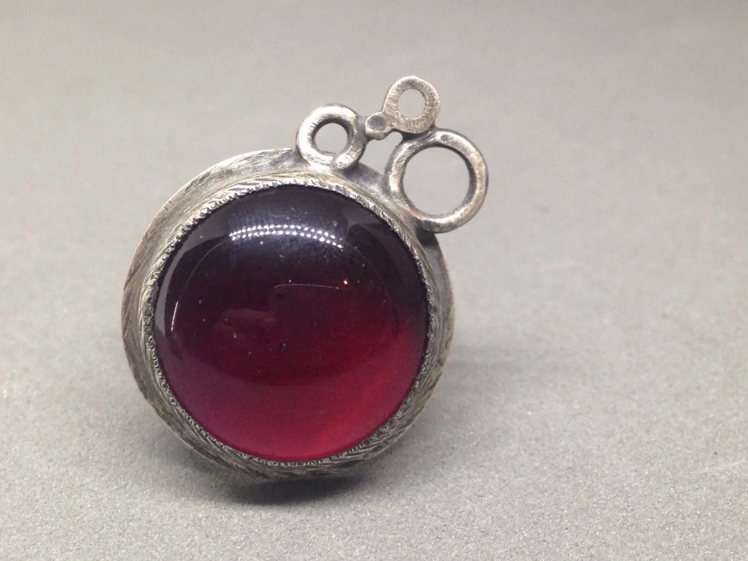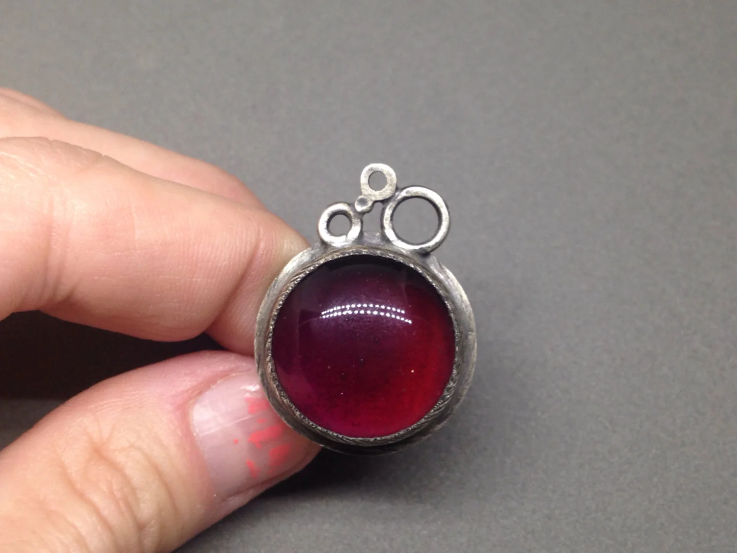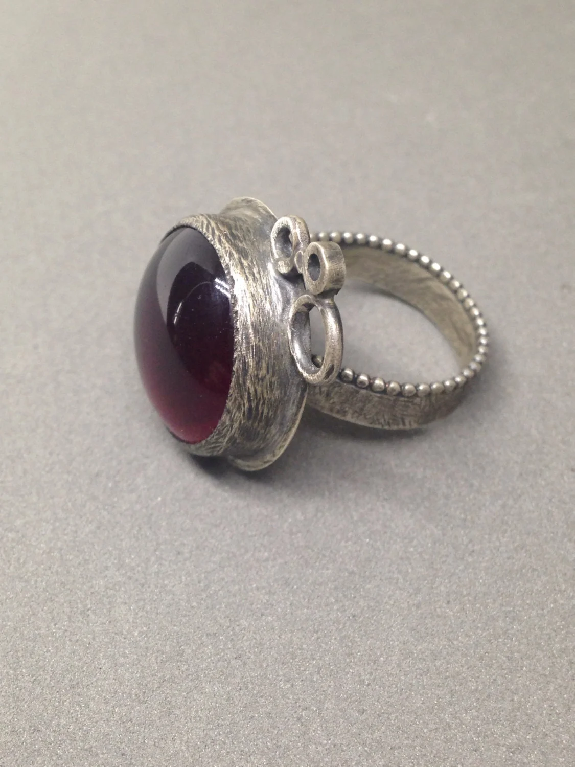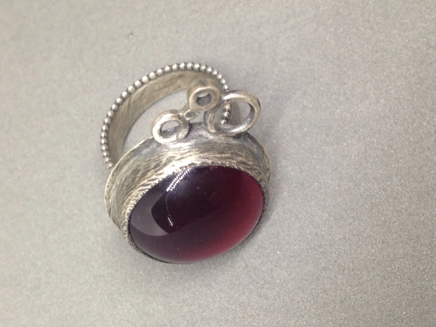 raspberry fushia berry glass gum drop ring geometric ring jewelry oxidized sterling silver vintage glass jewelry oversized cocktail ring sta