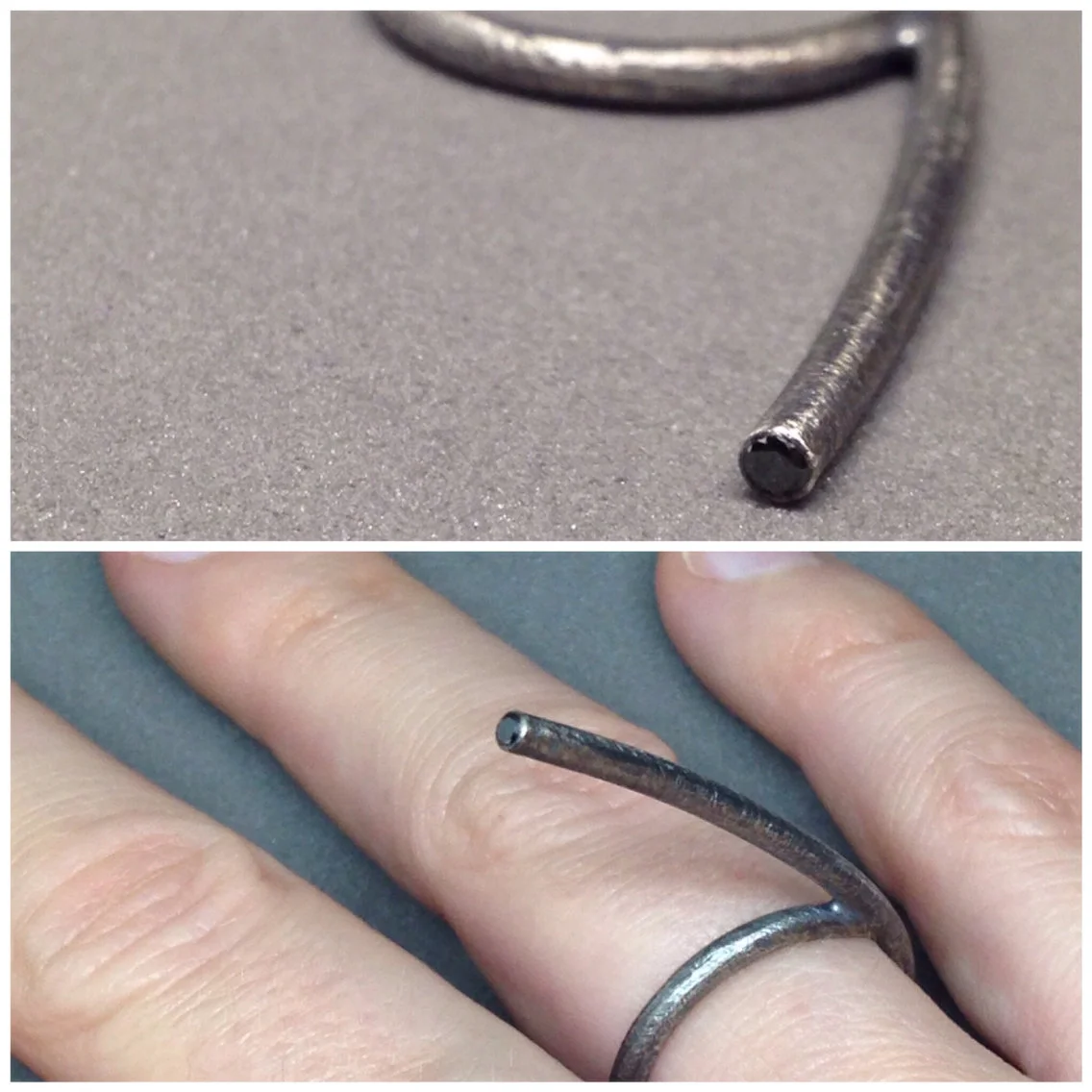 Spike ring oxidized sterling ring black diamond tall sleek modern wedding ring modern rustic eclectic jewelry metalsmith modern