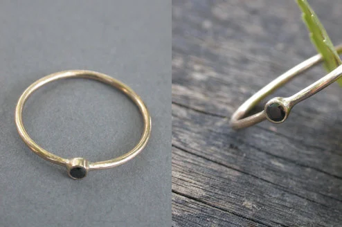 tiny black diamond engagement wedding ring simple yellow gold wedding ring modern ring simple feminine eclectic wedding ring