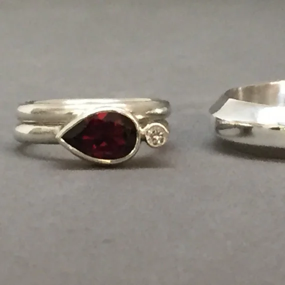 engagement ring polished sterling silver garnet diamond east west engagement ring