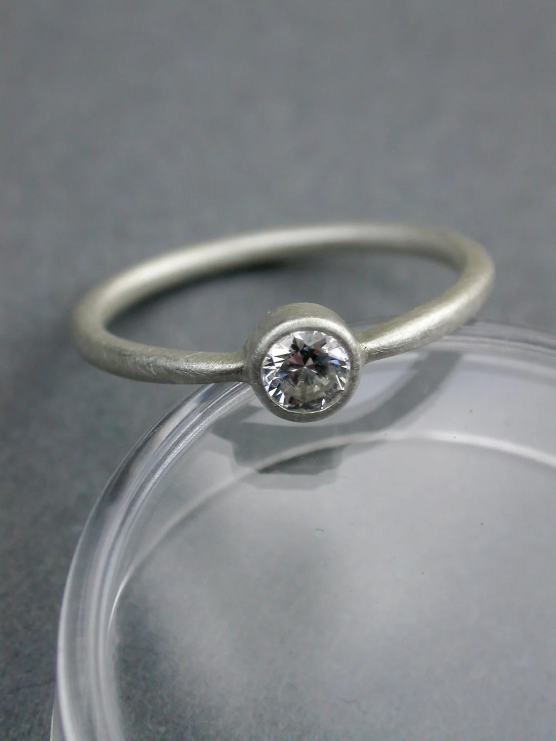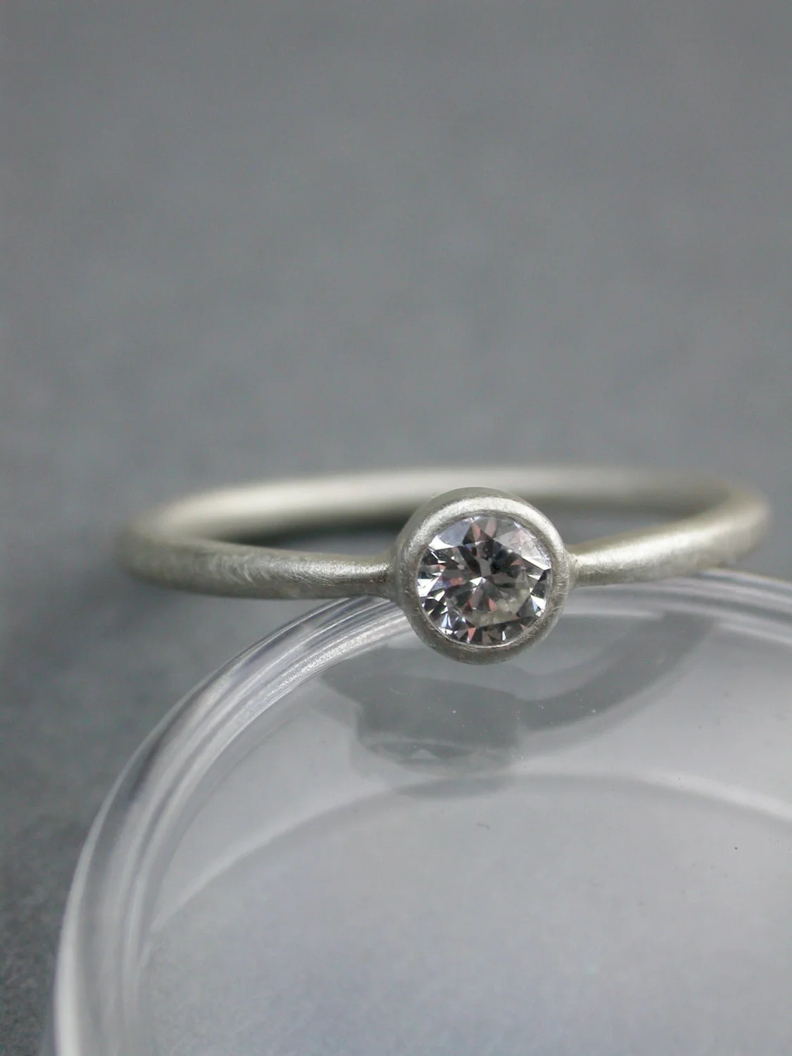 adorn your bride with this ethereal design. handmade engagement ring. this beauty features a 4mm .25ct. white diamond (VS clarity) see last two images for scale. the diamond is set in sterling silver with a matte surface.